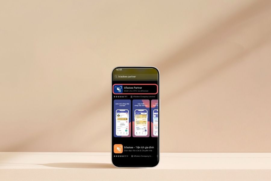Bước 1: Tải ứng dụng bTaskee Partner về điện thoại từ App Store hoặc Google Play. Đăng ký tài khoản với số điện thoại và hoàn thành bài kiểm tra tổng hợp về kiến thức liên quan đến công việc. Đường dẫn tải ứng dụng như sau: