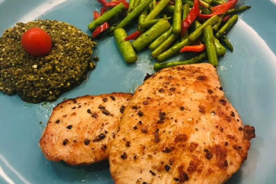 Ức gà áp chảo với vỏ ngoài giòn, bên trong thịt mềm ẩm, chấm với sốt chanh dây chua ngọt sẽ bùng nổ vị giác bất ngờ. Nếu như bạn chưa thử món ăn này, hãy nhanh tay làm thử cho gia đình để đổi bữa nhé!