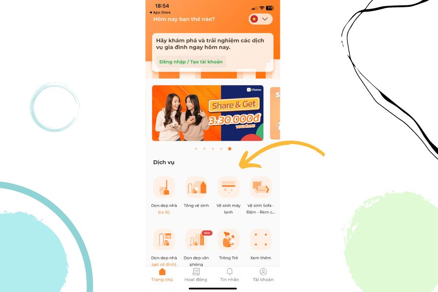 Bước 1: Chọn dịch vụ “Vệ sinh máy lạnh” trên app