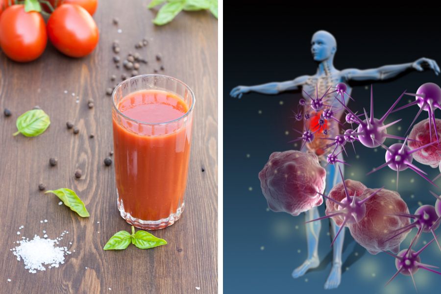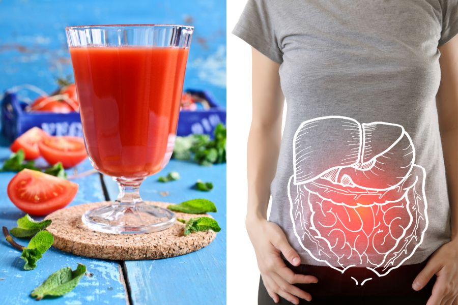 Không những vậy, các chất chống khuẩn tự nhiên trong nước ép cà chua cũng giúp giảm nguy cơ nhiễm trùng đường tiêu hóa, hỗ trợ cân bằng vi sinh trong đường ruột.