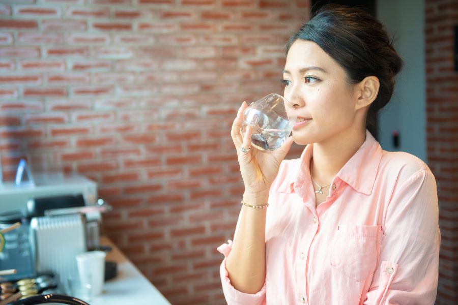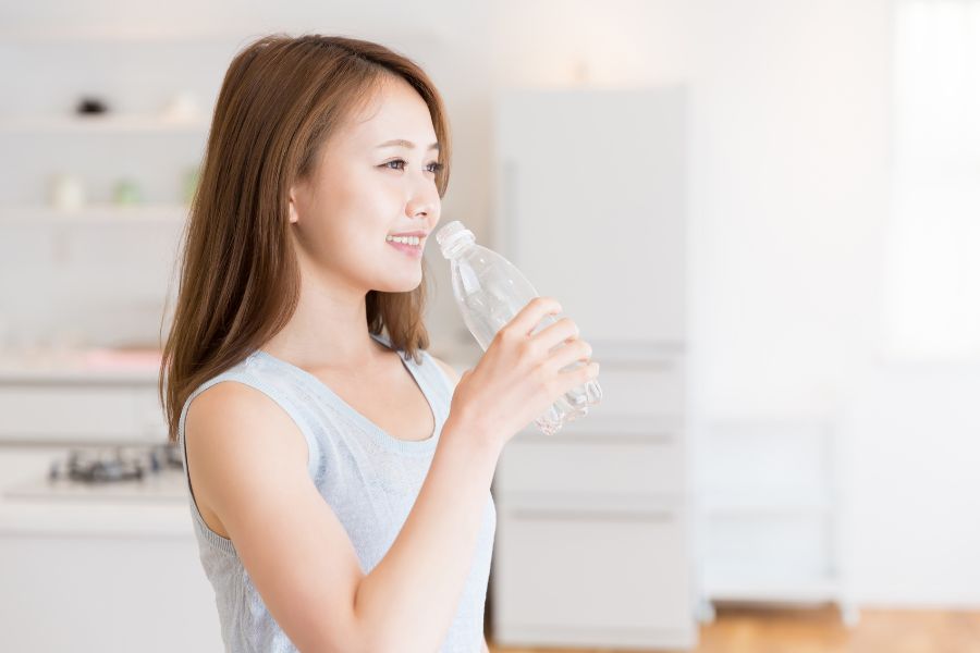 Bạn có biết 70% cơ thể là nước. Vì vậy uống nước đầy đủ là một cách đơn giản và hiệu quả trong việc cân bằng nội tiết tố. Như vậy làn da sẽ trở nên mịn màng, thúc đẩy quá trình trao đổi chất, hấp thụ chất dinh dưỡng và góp phần giảm mỡ nhanh chóng.