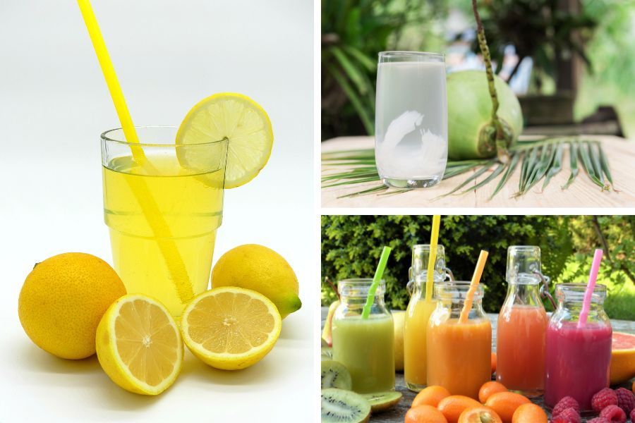 Uống nước giảm cân: Nước chanh, nước dừa và nước ép trái cây