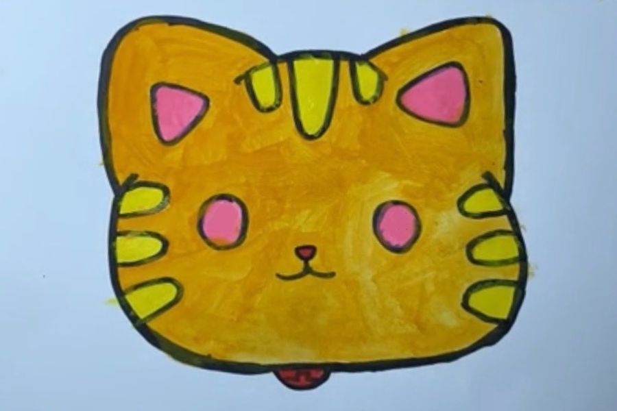 - Bước 4: Dùng bút dạ đen viền xung quanh con mèo cho rõ nét hơn.