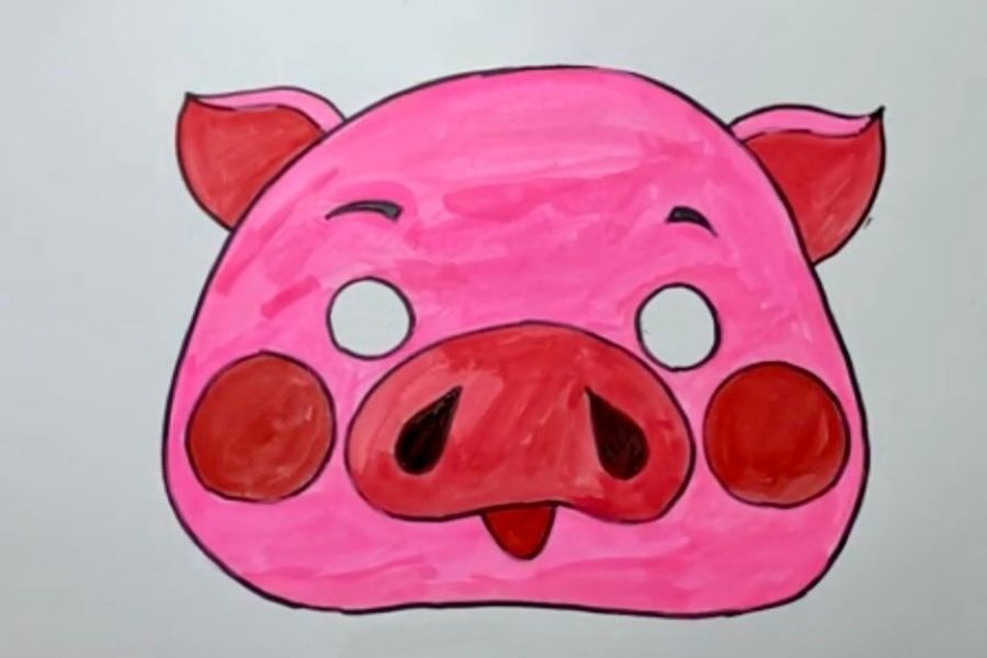 - Bước 3: Tô màu mặt nạ chú heo theo ý thích.