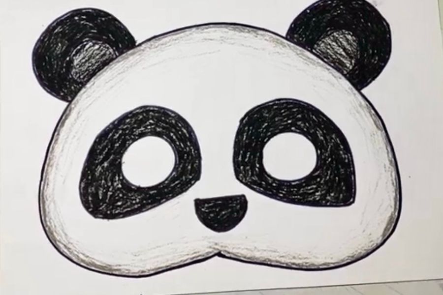 - Bước 1: Tạo hình dáng một chú gấu trúc bằng bút chì. Nhấn mạnh các đường nét bằng bút dạ đen để hình ảnh nổi bật.