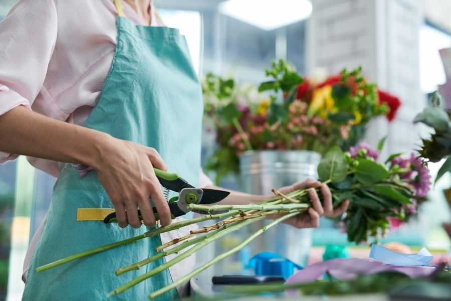 - Loại bỏ lá héo úa: Loại bỏ những chiếc lá héo úa ở phần cành hoa sẽ ngâm trong nước để tránh làm thối rữa nước.