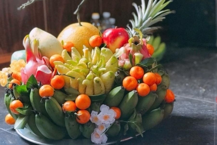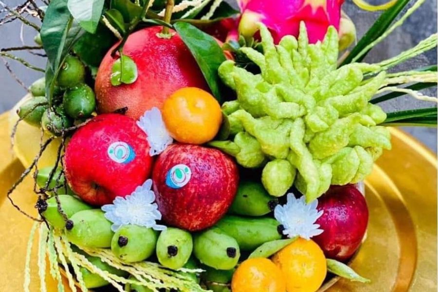 - Dùng các loại quả có hình dáng hoặc tên gọi gợi liên tưởng đến chữ Phúc, Lộc, Thọ.
