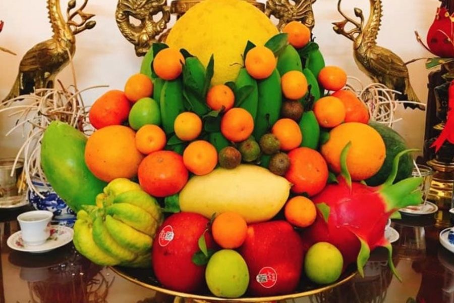- Trái cây nên chọn loại vừa chín tới, vỏ căng bóng, không bị dập nát. Trái cây quá chín dễ bị hư hỏng và không còn giữ được hương vị thơm ngon nhất. Điều này không chỉ làm giảm tính thẩm mỹ của mâm ngũ quả mà còn thể hiện sự thiếu tôn trọng đối với thần linh.