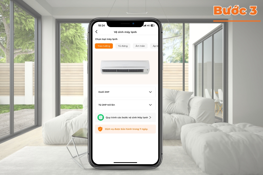 Bước 2: Chọn dịch vụ “Vệ sinh máy lạnh”