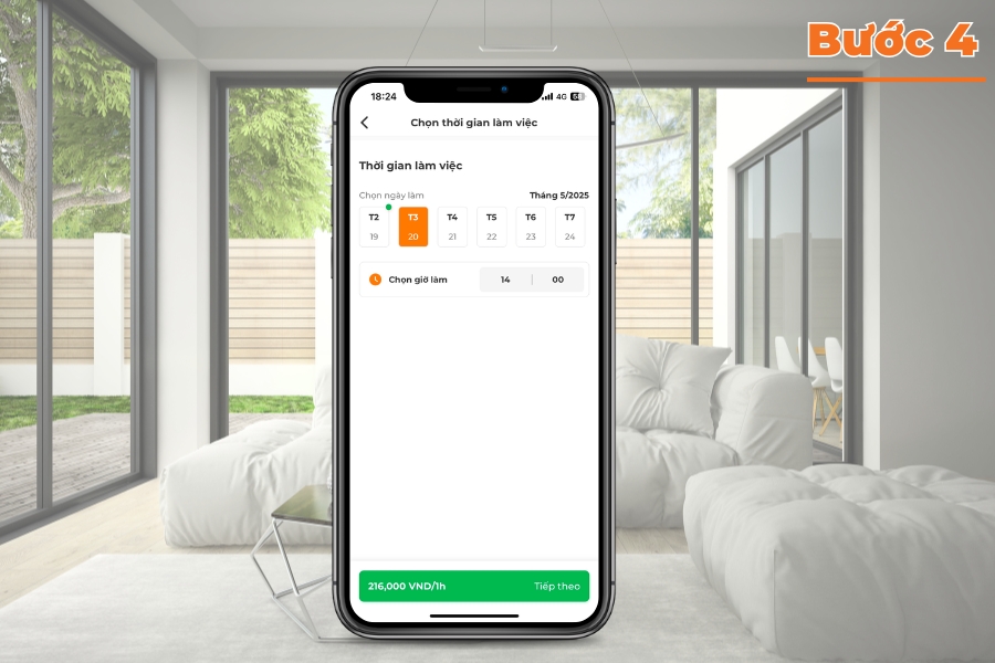 Tasker bTaskee tiếp nhận đơn đặt lịch và có mặt đúng thời gian yêu cầu.