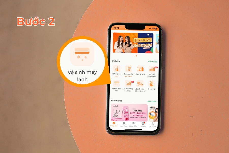 Bước 2: Chọn dịch vụ “vệ sinh máy lạnh”