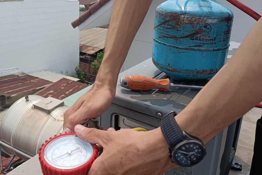 Trường hợp khách hàng chọn thêm dịch vụ bơm gas, Tasker sẽ kiểm tra áp suất gas hiện tại và bổ sung gas làm lạnh theo đúng tiêu chuẩn. Mỗi lần bơm gas tiêu chuẩn là 30 PSI. Nếu cần bổ sung nhiều hơn, Tasker sẽ báo giá trước với khách hàng để đảm bảo tính minh bạch.