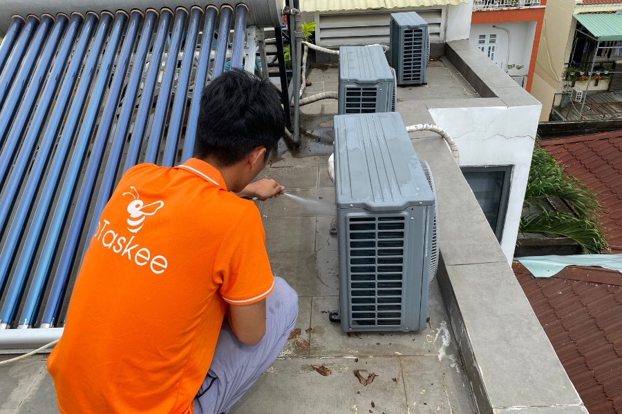 Dàn nóng (dàn ngưng tụ) được đặt ở bên ngoài thường tích tụ nhiều bụi bẩn do tác động của môi trường. Tasker vệ sinh kỹ lưỡng dàn nóng để đảm bảo khả năng tản nhiệt tối ưu, giúp máy hoạt động hiệu quả và tiết kiệm điện.
