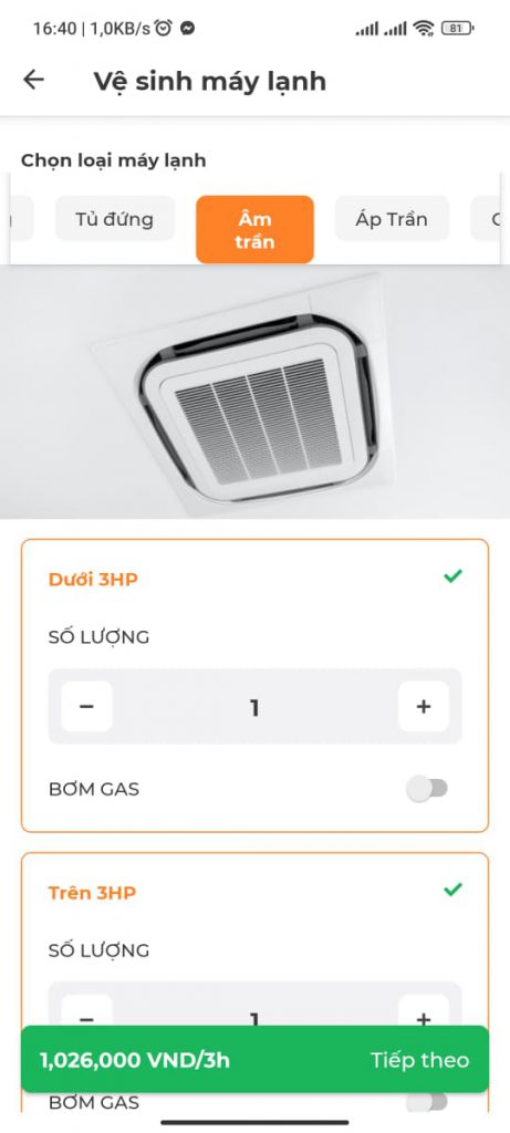 Bước 1: Chọn dịch vụ vệ sinh máy lạnh trên app bTaskee.