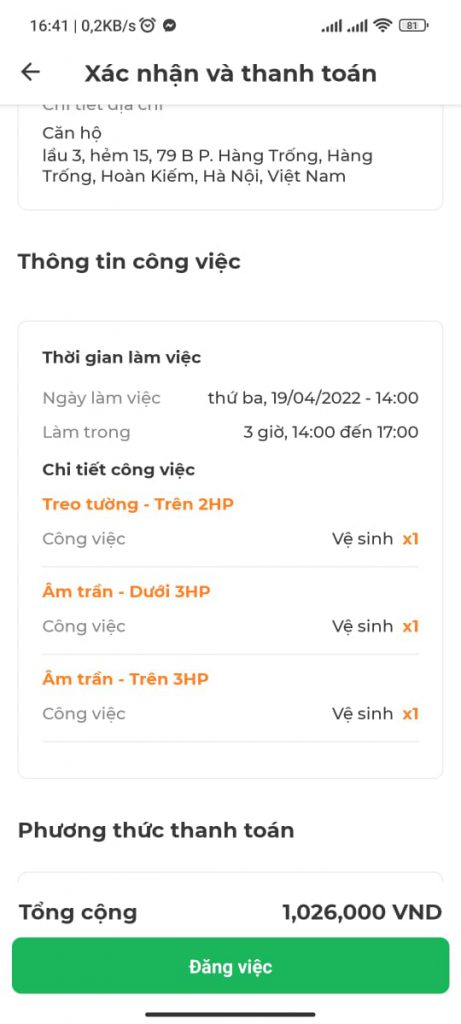 Bước 5: Xác nhận thông tin liên hệ, địa chỉ, chọn phương thức thanh toán và hoàn tất đăng việc.