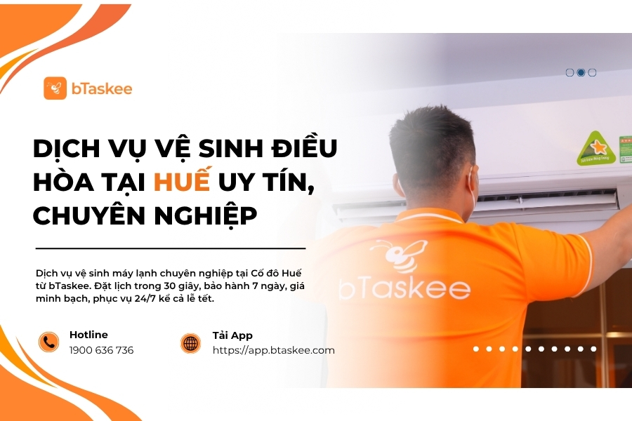 Đội ngũ kỹ thuật viên bTaskee tại Huế gồm hàng trăm Tasker có kinh nghiệm và kỹ năng chuyên môn cao. Họ không chỉ thành thạo các kỹ thuật vệ sinh điều hòa mà còn am hiểu sâu sắc về đặc điểm địa phương.