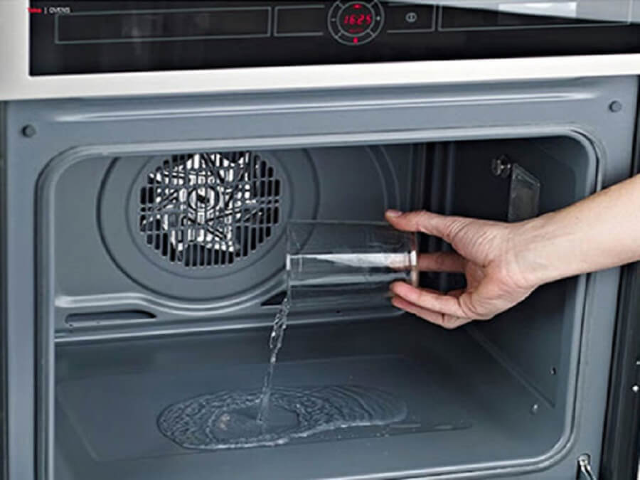 Với chế độ tự vệ sinh lò nướng thì nhiệm vụ của bạn chỉ cần nhấn nút để máy tự làm việc. Tuy nhiên nếu chế độ vệ sinh lò nướng của máy là HydroClean thì trước khi bật máy cần cho vào đáy lò một ít nước.