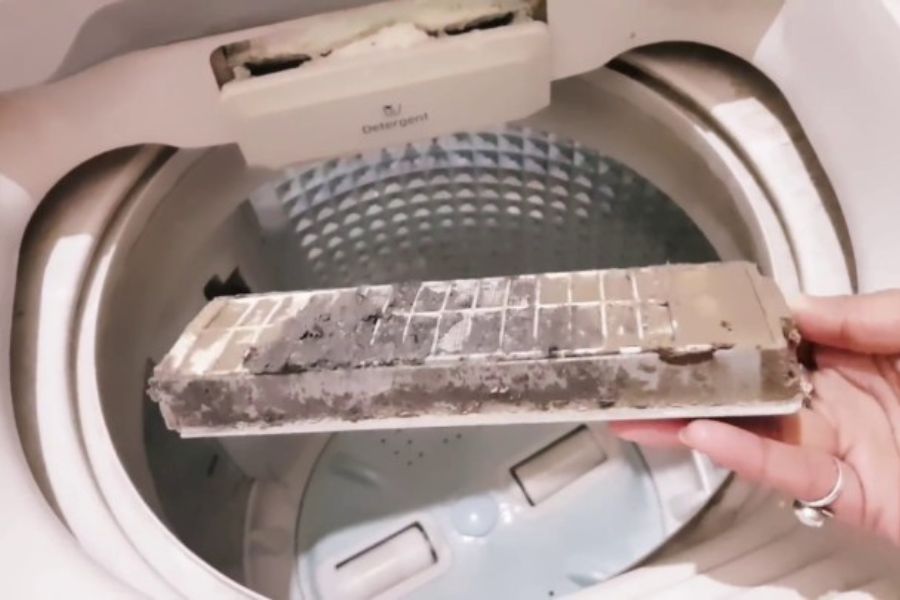 - Bước 1: Tách rời lưới lọc xơ vải ra khỏi máy giặt.
