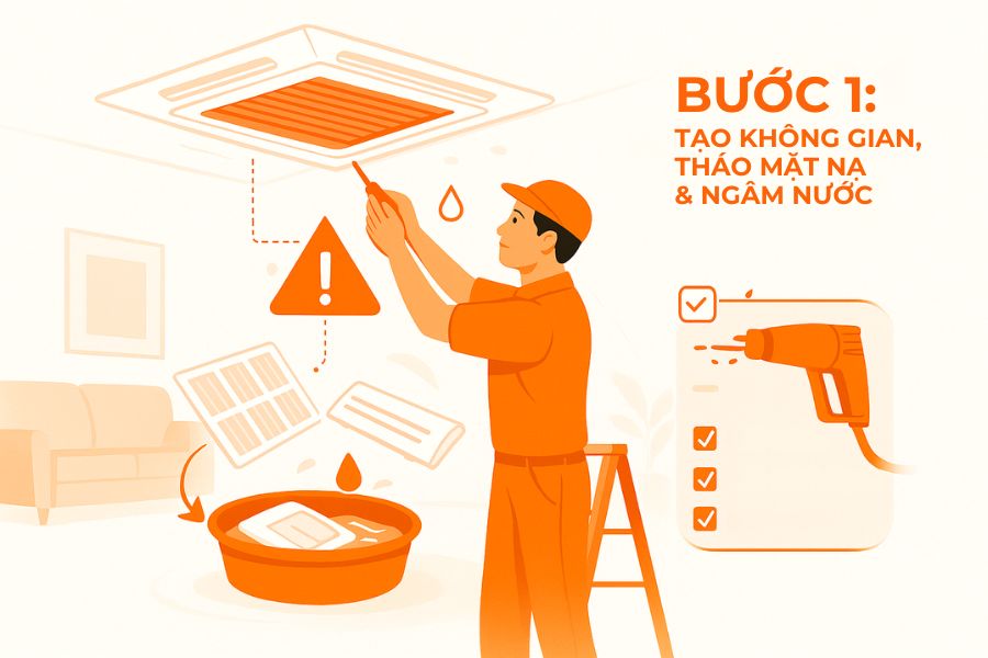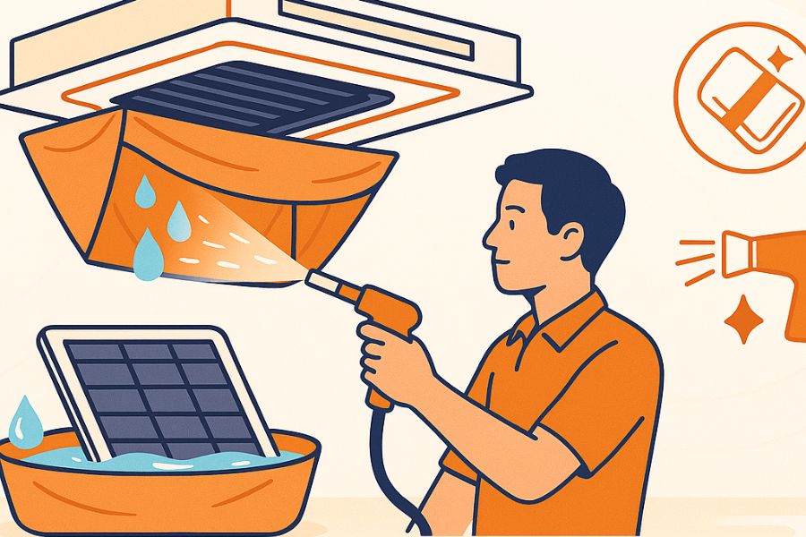 Hướng Dẫn Quy Trình Vệ Sinh Máy Lạnh Âm Trần Cassette Chi Tiết, An Toàn, Hiệu Quả