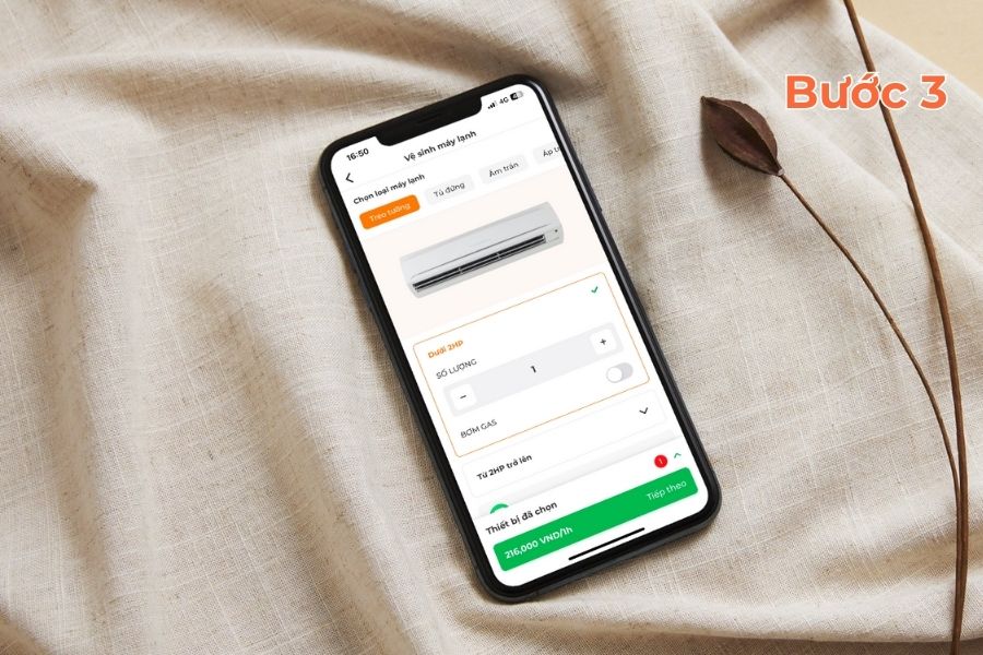 Bước 2: Chọn dịch vụ “Vệ sinh máy lạnh”