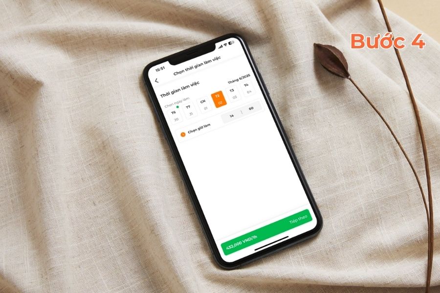 Bước 4: Chọn thời gian và ngày sử dụng dịch vụ