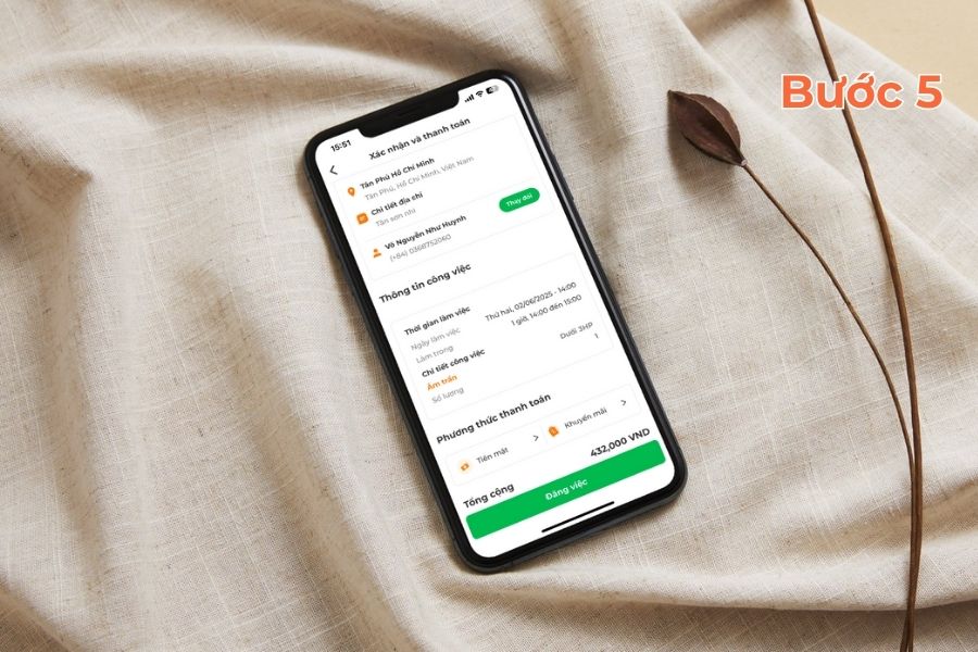 Bước 5: Xác nhận và thanh toán (trên ứng dụng)