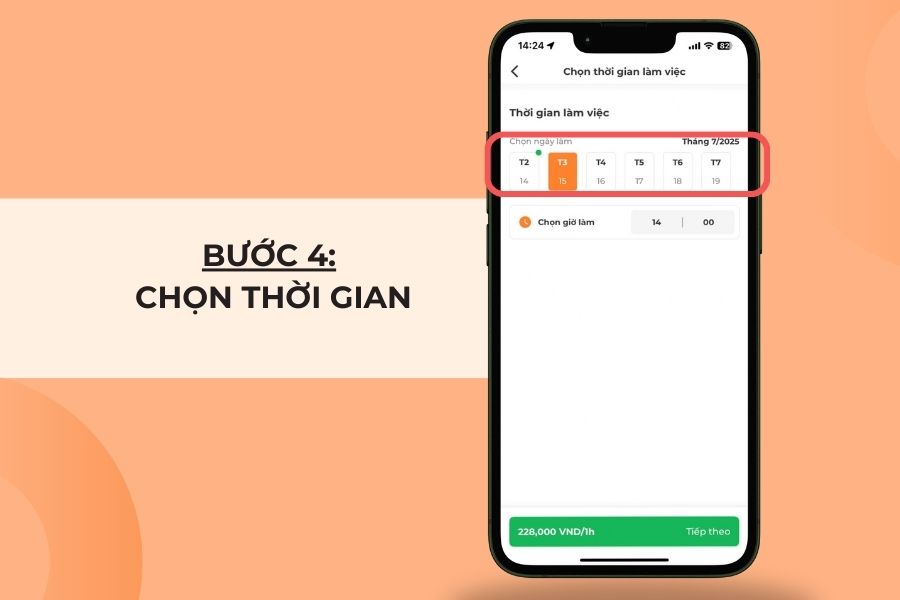 Lựa chọn ngày giờ phù hợp với lịch trình cá nhân. bTaskee phục vụ 24/7, kể cả cuối tuần và lễ Tết.