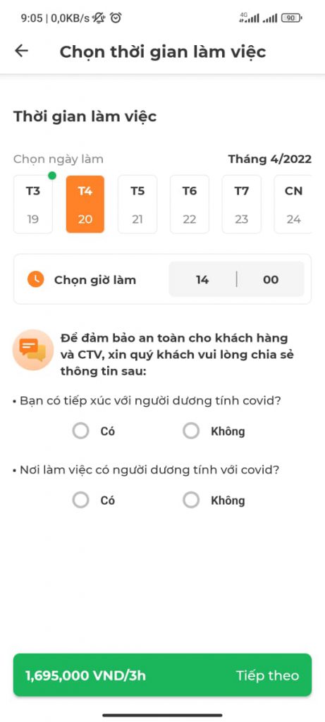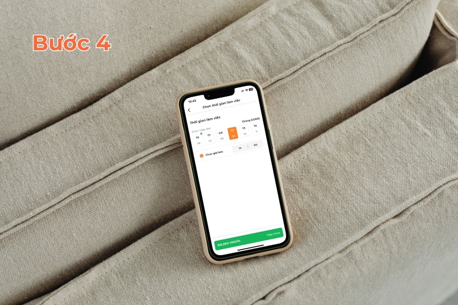 Lựa chọn ngày và khung giờ mong muốn từ lịch có sẵn. Hệ thống sẽ hiển thị các khung giờ trống và ước tính thời gian hoàn thành.