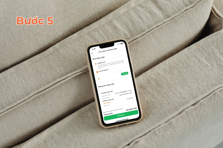 Tasker đến đúng giờ hẹn, kiểm tra thông tin đơn hàng và xác nhận với khách hàng về yêu cầu cụ thể.