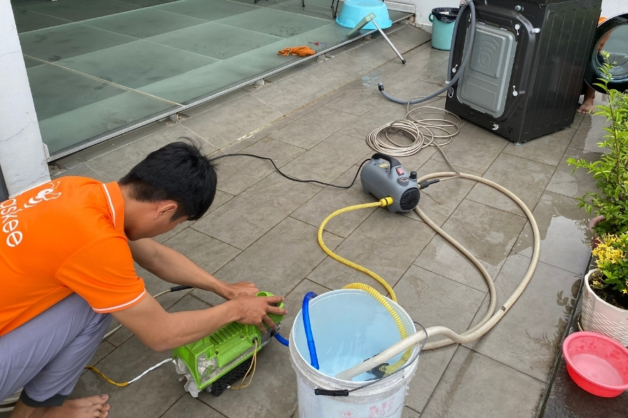 Khi phát hiện dấu hiệu rò rỉ, ngừng sử dụng máy và liên hệ ngay với bTaskee qua hotline 1900 636 736. Tasker sẽ đến kiểm tra, xác định vị trí rò rỉ và đưa ra phương án sửa chữa an toàn.