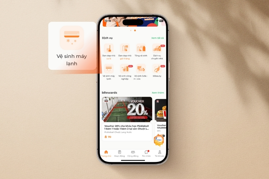 Bước 2: Chọn dịch vụ “Vệ sinh máy lạnh” trên màn hình chính