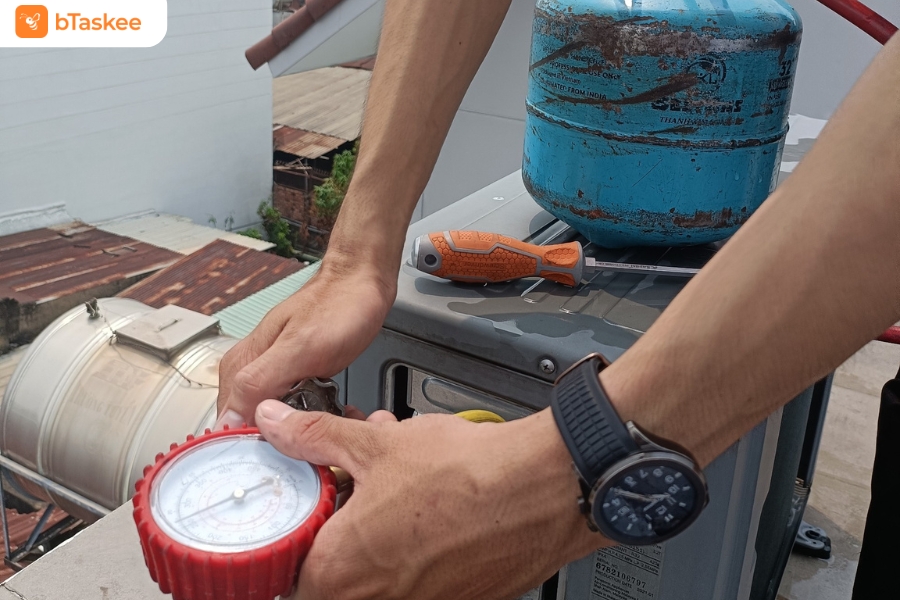 Bước 7: Bơm gas bổ sung nếu cần (30 PSI/lần theo tiêu chuẩn)