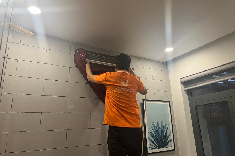 - Thuê dịch vụ chuyên nghiệp như bTaskee: Kỹ thuật viên được đào tạo bài bản, có thể vệ sinh toàn bộ hệ thống, bao gồm cả bên trong dàn lạnh, dàn nóng, xử lý triệt để bụi mịn, nấm mốc và mảng bám cứng đầu.