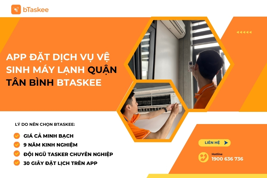 Hiểu rõ điều đó, bTaskee mang đến dịch vụ vệ sinh máy lạnh chuyên nghiệp, đặt lịch dễ dàng qua ứng dụng và phục vụ tại cả 15 phường thuộc quận Tân Bình. Với 9 năm kinh nghiệm và hơn 1 triệu khách hàng tin dùng, bTaskee cam kết mang đến giải pháp vệ sinh nhanh chóng, an toàn và hiệu quả .