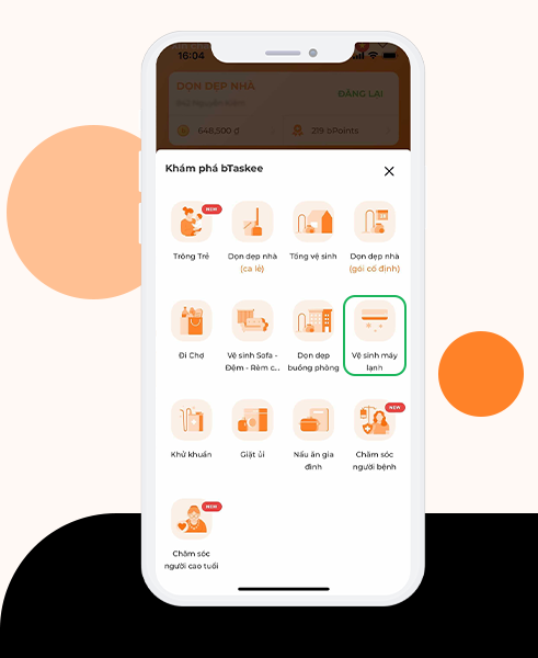 Bước 1: Nhấn vào biểu tượng “Vệ sinh máy lạnh” trên ứng dụng bTaskee