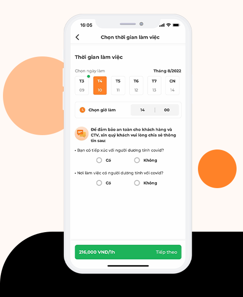 Bước 4: Chọn thời gian làm việc, bTaskee sẽ đến đúng thời gian để vệ sinh máy lạnh cho bạn