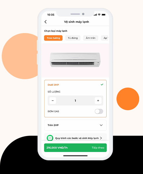 Bước 3: Nhấn chọn loại máy lạnh và số lượng cần được vệ sinh