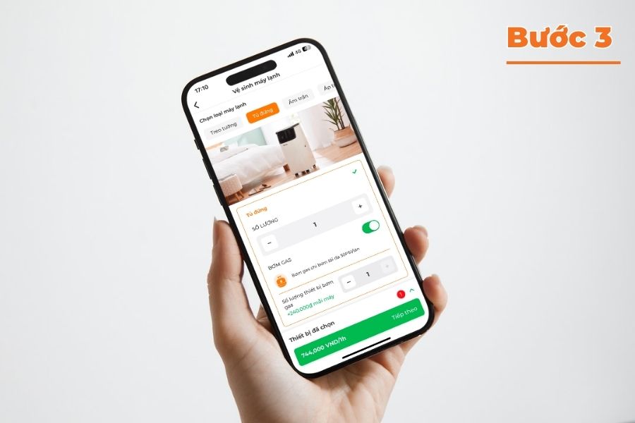Bước 2: Chọn dịch vụ “vệ sinh máy lạnh”