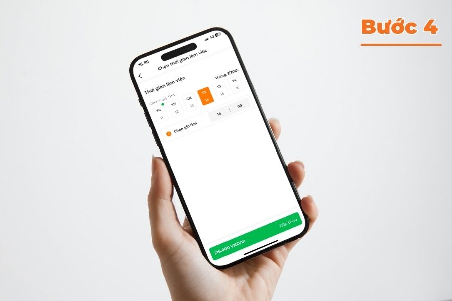 Lựa chọn thời gian phù hợp với lịch trình cá nhân. bTaskee hỗ trợ đặt lịch trước hoặc đặt gấp khi cần thiết. Bạn có thể chọn khung giờ thuận tiện, kể cả cuối tuần và ngày lễ.
