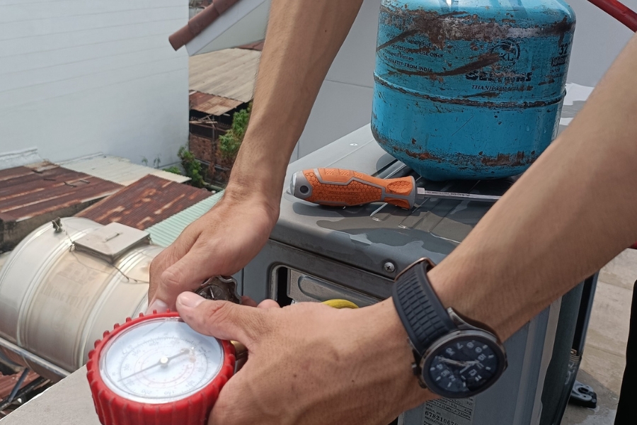 Bước 7: Dịch vụ thêm (tùy chọn): Bơm gas máy lạnh, bơm tối đa 30 PSI/lần. Nếu cần bổ sung ga nhiều hơn, chuyên gia vệ sinh sẽ báo giá trước với Khách hàng để đảm bảo tính minh bạch.