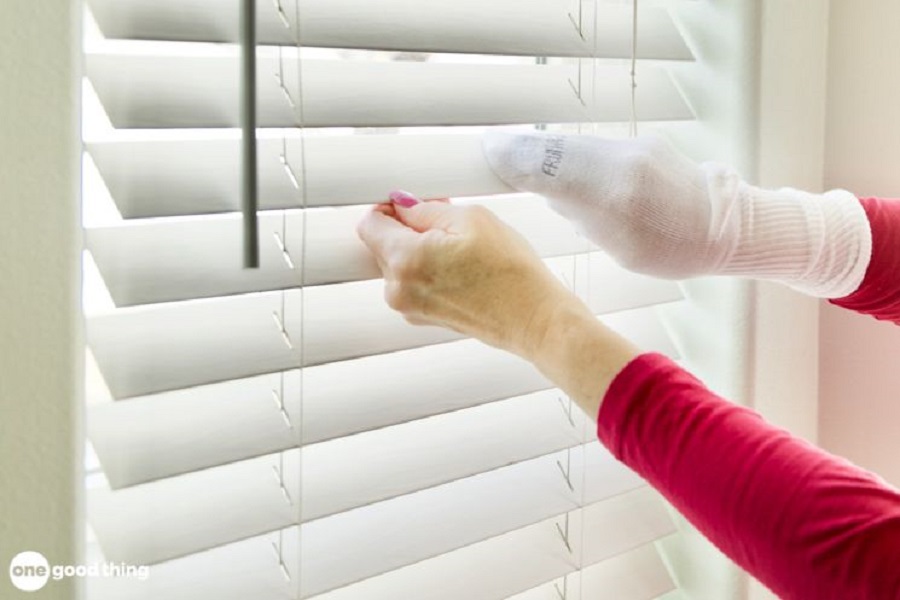 Khi lau chùi rèm, nên đi từ trên xuống vì các thanh rèm sẽ bị rơi xuống khi đi theo chiều ngược lại