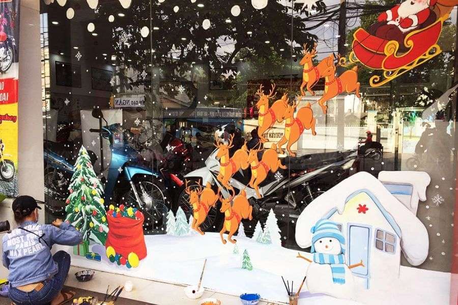 Dành cho những tín đồ nghệ thuật, việc vẽ trực tiếp các chủ đề Giáng Sinh lên cửa kính sẽ là một trải nghiệm sáng tạo và thú vị.