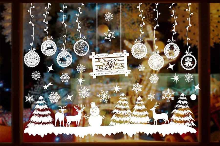 Những miếng decal với những hình ảnh đáng yêu như ông già Noel, tuần lộc, cây thông, hay những ngôi sao tuyết sẽ biến cửa kính của bạn trở nên sống động và đầy màu sắc.