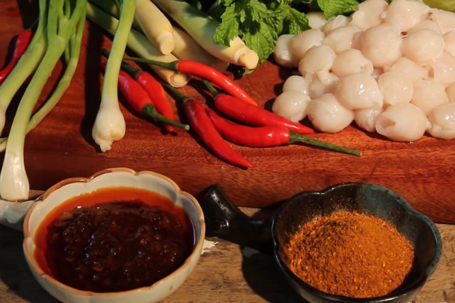 - Sa tế, ớt bột, dầu hào, nước tương, sả băm, tỏi băm, hành tím băm, mật ong, dầu ăn, tiêu xay.
