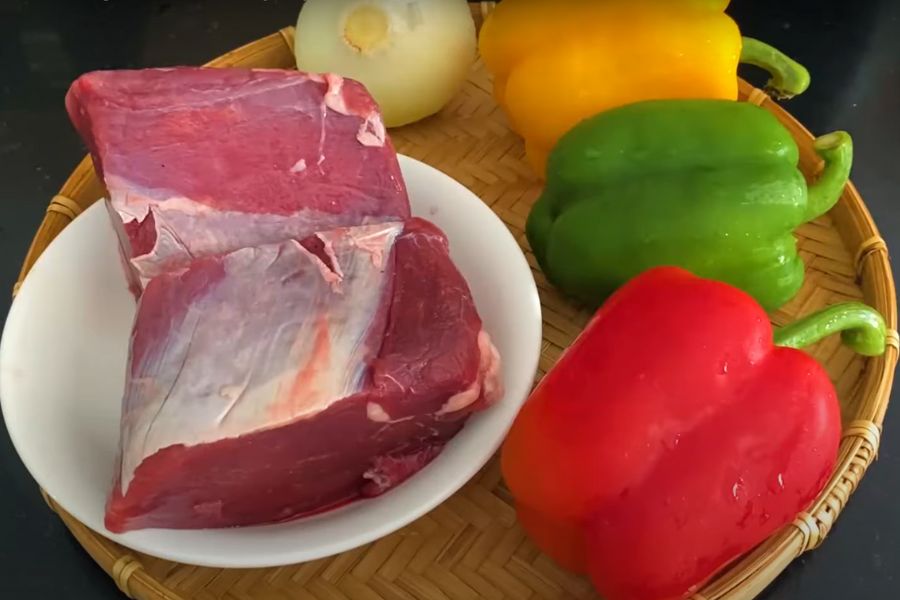 - Bước 1: Rửa sạch ớt chuông xanh, đem cắt thành miếng vừa ăn cùng hành tây (bạn có thể thay thế bằng các nguyên liệu khác như nấm, cà chua bi, bắp,… tùy sở thích cá nhân).