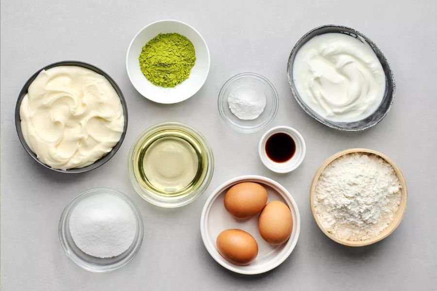 Chuẩn bị hỗn hợp vào 1 tô lớn gồm: 2 cốc bột mì, 1 chút bột nở, 1 chút muối, 2 muỗng canh matcha. Từ từ trộn tô bơ vừa được đánh vào hỗn hợp và thêm vào 1 cốc sữa. Rồi đánh tất cả thêm một lần nữa đến khi kết dính là được.