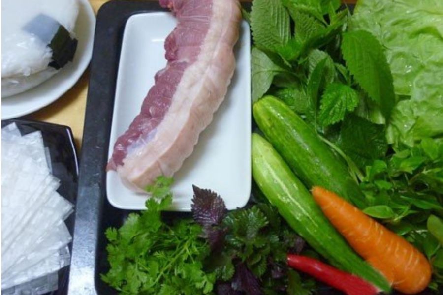 Để bắt tay vào làm món bánh tráng cuốn thịt heo Đà Nẵng, ta cần phải chuẩn bị nguyên liệu cho làm bánh tráng cuốn và làm nước chấm như sau: