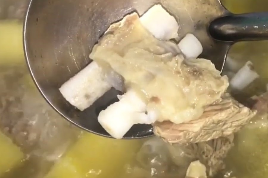 - Sườn đã mềm bạn cho đu đủ xanh vào hầm khoảng 15 – 20 phút để đu đủ chín.