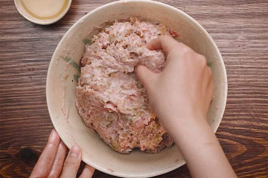 - Nên trộn bằng tay để cốm được dai và ngon hơn. Trộn đều hỗn hợp và để yên vào ngăn mát tủ lạnh trong 30 phút cho gia vị ngấm đều vào chả.