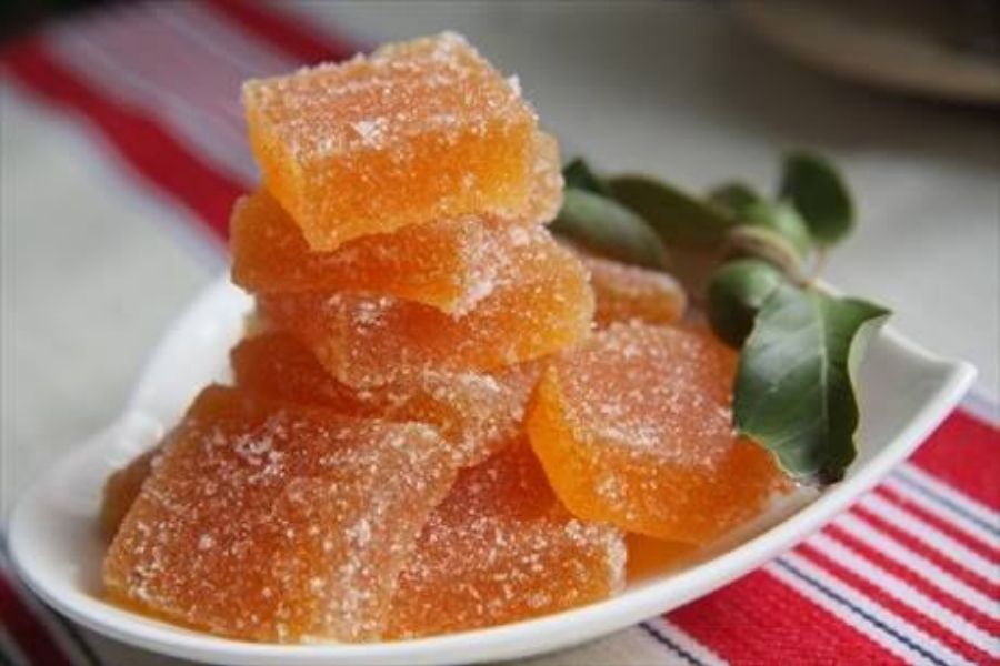 Kẹo dẻo cam dừa khi hoàn thành có màu sắc bắt mắt, hương thơm hấp dẫn. Vị the the, hòa quyện trong vị ngọt ngào và beo béo của dừa khô tạo nên một hương vị khó quên, sẽ là món kẹo yêu thích của các gia đình có em nhỏ.